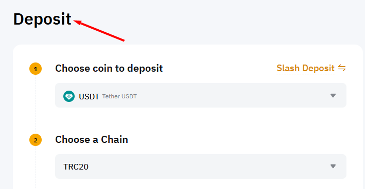 - 입금하고 싶은 코인을 선택한 후 Deposit(입금) 클릭